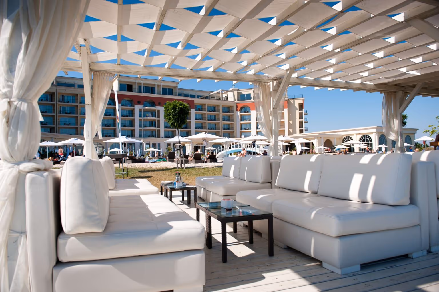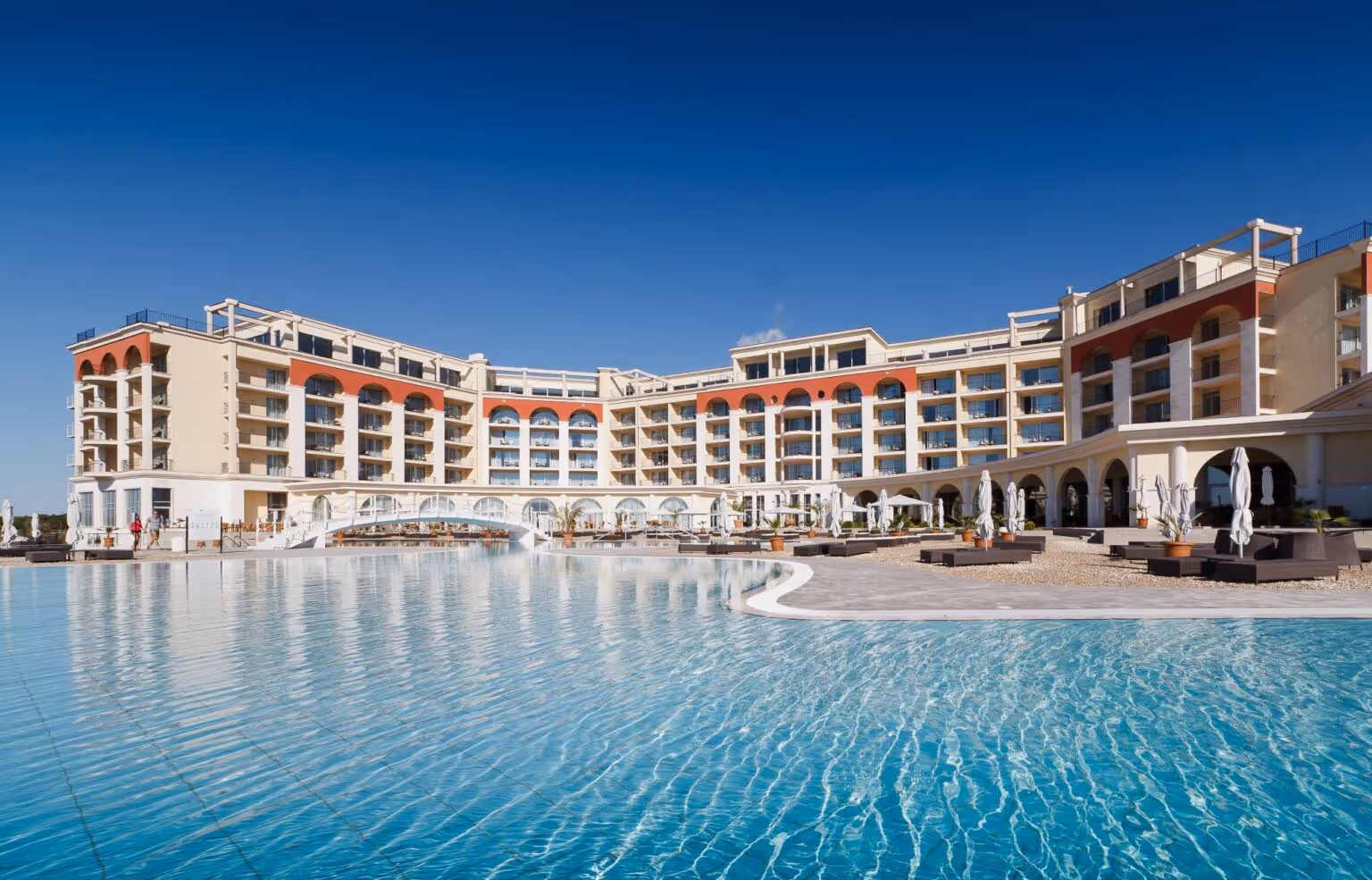 You’ll stay at the Lighthouse Golf & Spa Hotel Balchik, a luxurious five-star retreat perched atop breathtaking white cliffs, offering elegant accommodations with terraces that open to sweeping views of the Black Sea or its championship golf course.